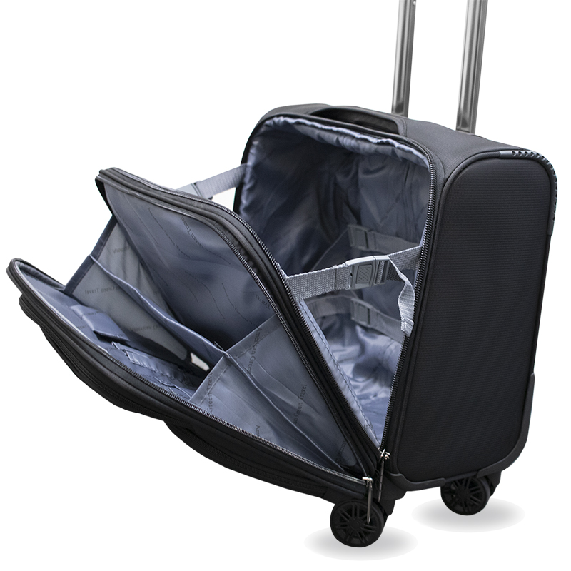 These two soft-side rolling carry-ons are sleek and functional and can hold your laptop, documents, clothes, shoes, and toiletries needed for a short trip.