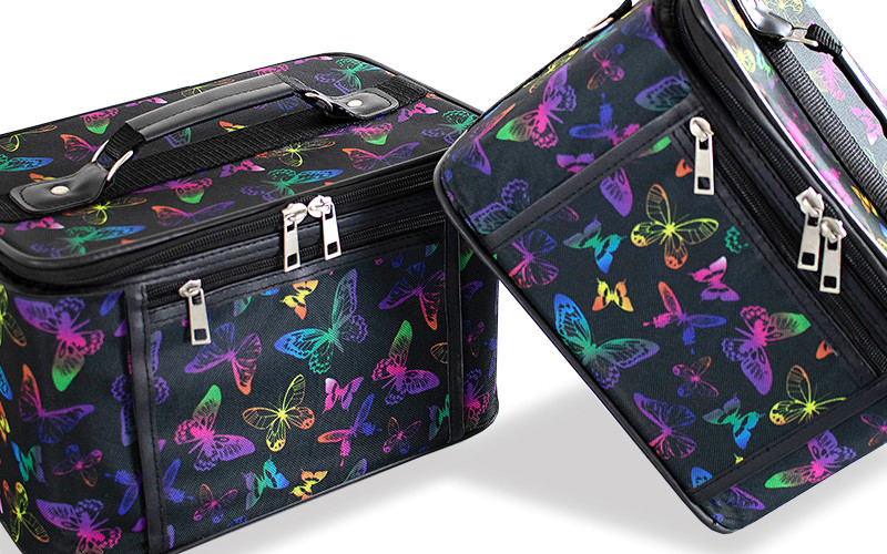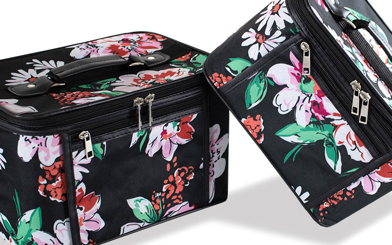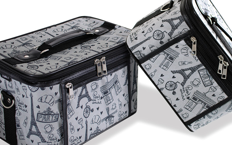 AMKA, a Prima brand that specializes in budget-friendly suitcases and travel bags, has its own line of beauty cases, like the nesting cosmetic cases (CC020). These sturdy set cases are designed to nest in one another for easy storage. They come in various print designs with spacious compartments, detachable and adjustable straps, and business-card-sized acrylic mirrors.